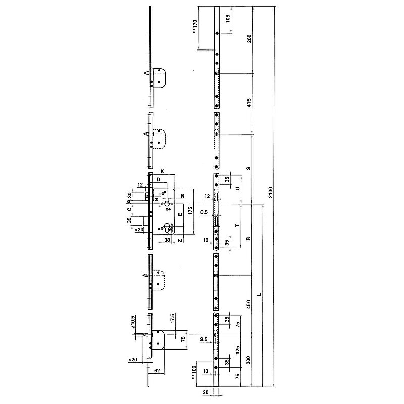 mit gehärteten Spitzbolzen "S" - Funktion ist nur mit eingebautem Zylinder gegeben, Montageanleitung beachten