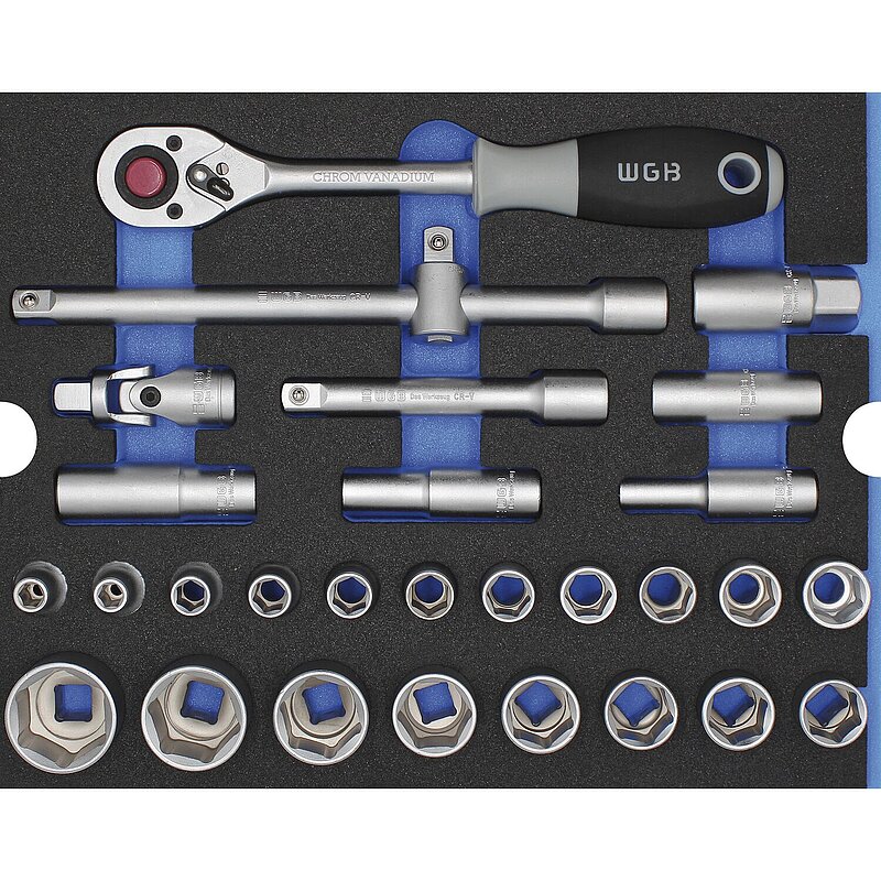 1/2" Steckschlüssel-Einsatz, 6-kant, DIN 3124: 8, 9, 10, 11, 12, 13, 14, 15, 16, 17, 18, 19, 20, 21, 22, 24, 27, 30, 32 mm
