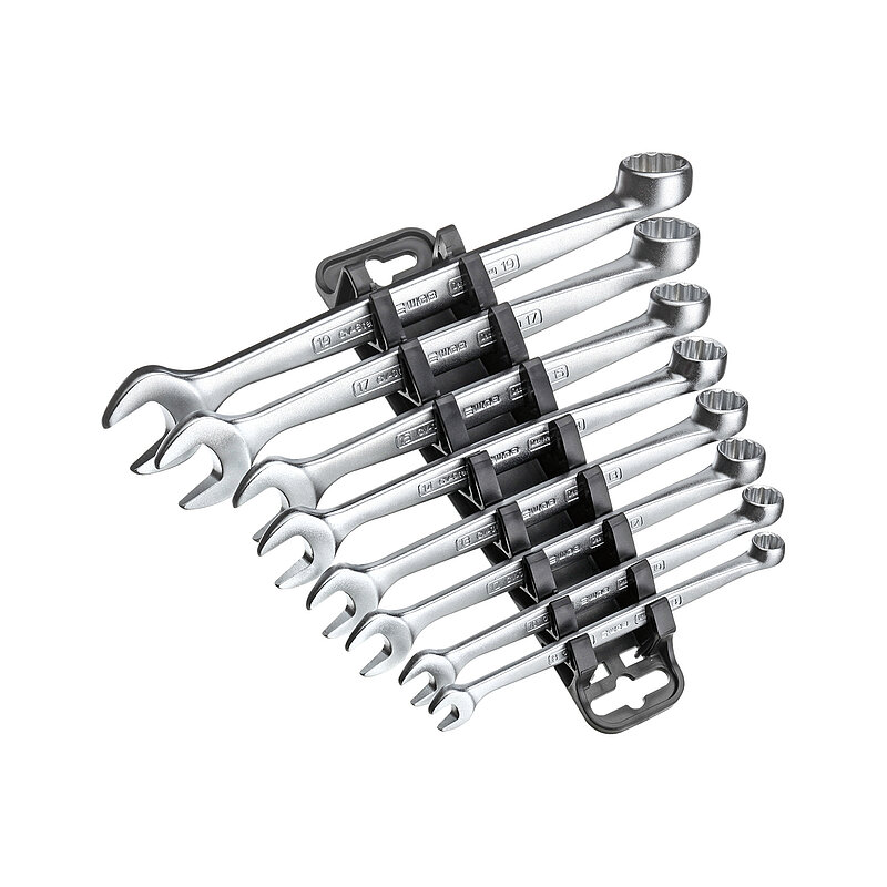 Durch das spezielle HOT!FORCE Design der Maulseite gleitet der Schlüssel leichter und in natürlich-schräger Haltung auf die Schraube, daher erhöht sich der Arbeitsbereich um ca. 15%. Mit gleichen Schlüsselweiten. 3D-Design für bessere Ergonomie. Im Kunststoffhalter.