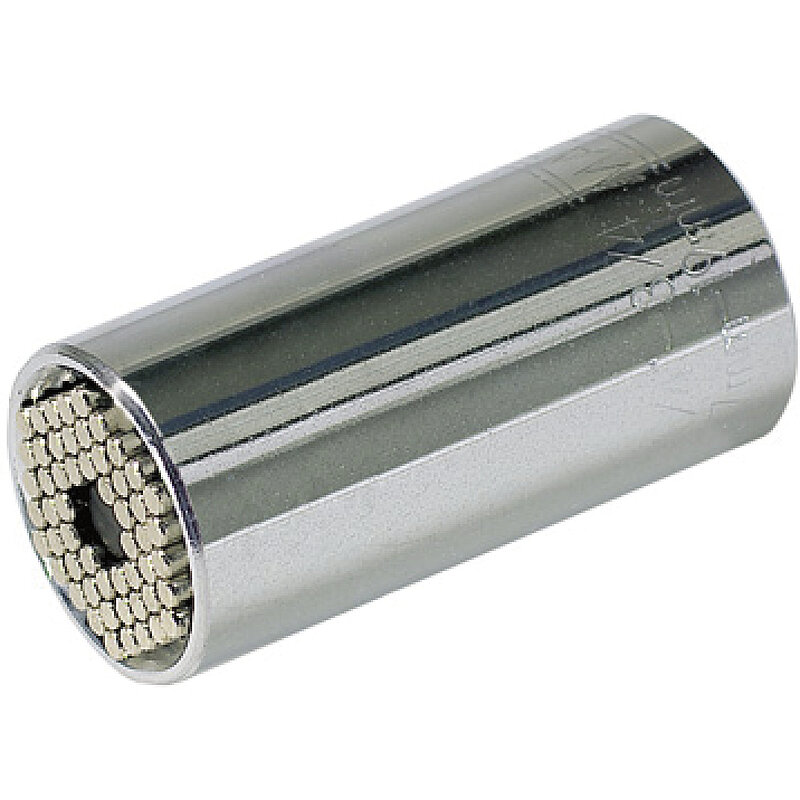 Die 54 Stahlstifte passen sich jeder Mutter oder Schraube mit Aussenprofil an. Für Schrauben bis 8 mm Höhe. Ersetzt Nüsse von 7 mm bis 19 mm, egal ob metrisch oder zoll-Abmessung. Auch für Haken- oder Ösenschrauben verwendbar. Antrieb DIN 3120 Form C 10.