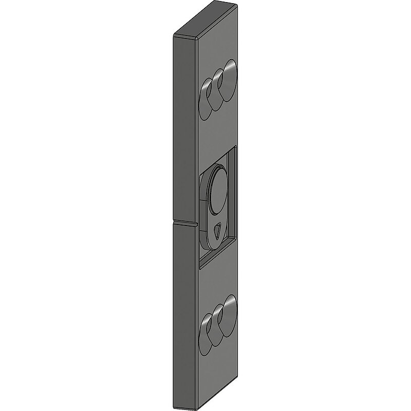 Der Magnetclip mit Schließblech (zur Verwendung mit Einzelschließblechen) wird auf Höhe des Motorkastens im gegenüberliegenden Blendrahmen montiert. Der Magnetclip löst nach dem Zuziehen der Tür den motorischen Verriegelungsvorgang aus, bei dem der Hauptriegel wie auch die Nebenverriegelungselemente ausgeriegelt werden. Zudem gibt der Magnetclip das Signal, ob die Tür offen oder geschlossen ist.