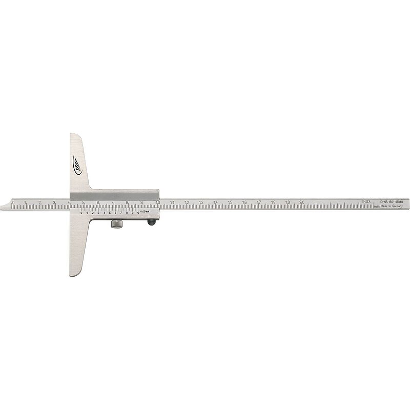 Tiefenmessschieber, rostfreier Stahl, Nonius + Skala mattverchromt, gerade Messstange.